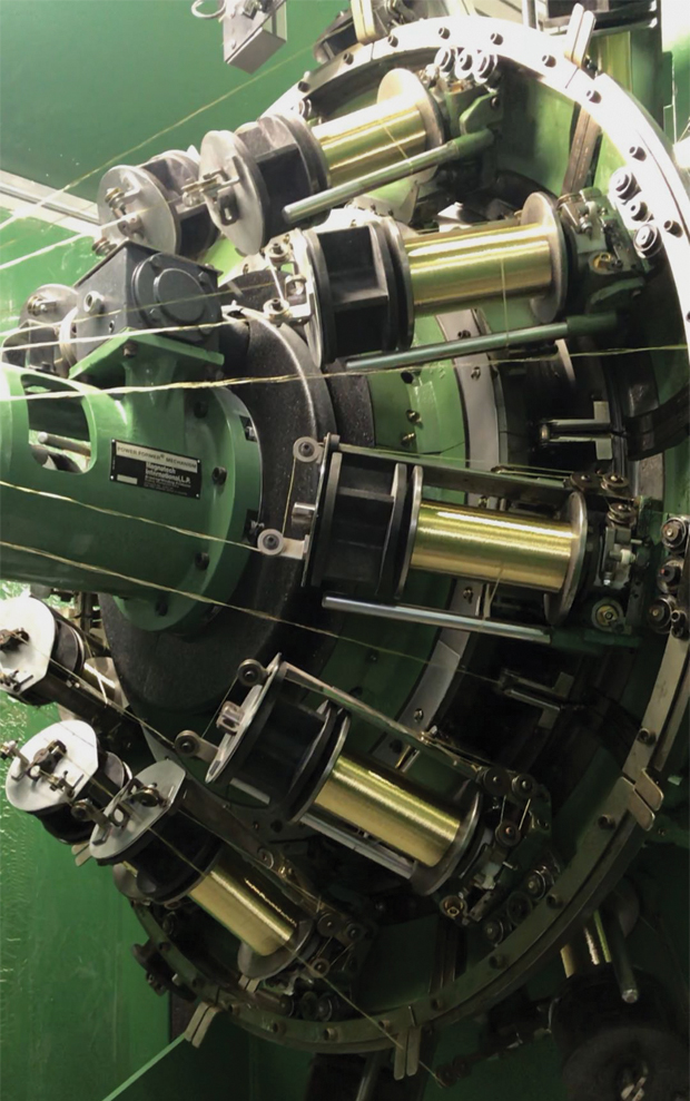 本機是我公司研發(fā)制造的一種新型鋼絲編織機,本機采用控制旋轉(zhuǎn)原理,錠子按圓形軌道做圓周直線運動,它突破了國內(nèi)外傳統(tǒng)鋼絲編織 8 字交接原理,本機是具有技術(shù)專業(yè)科技含量高的一款新型鋼絲編織機。